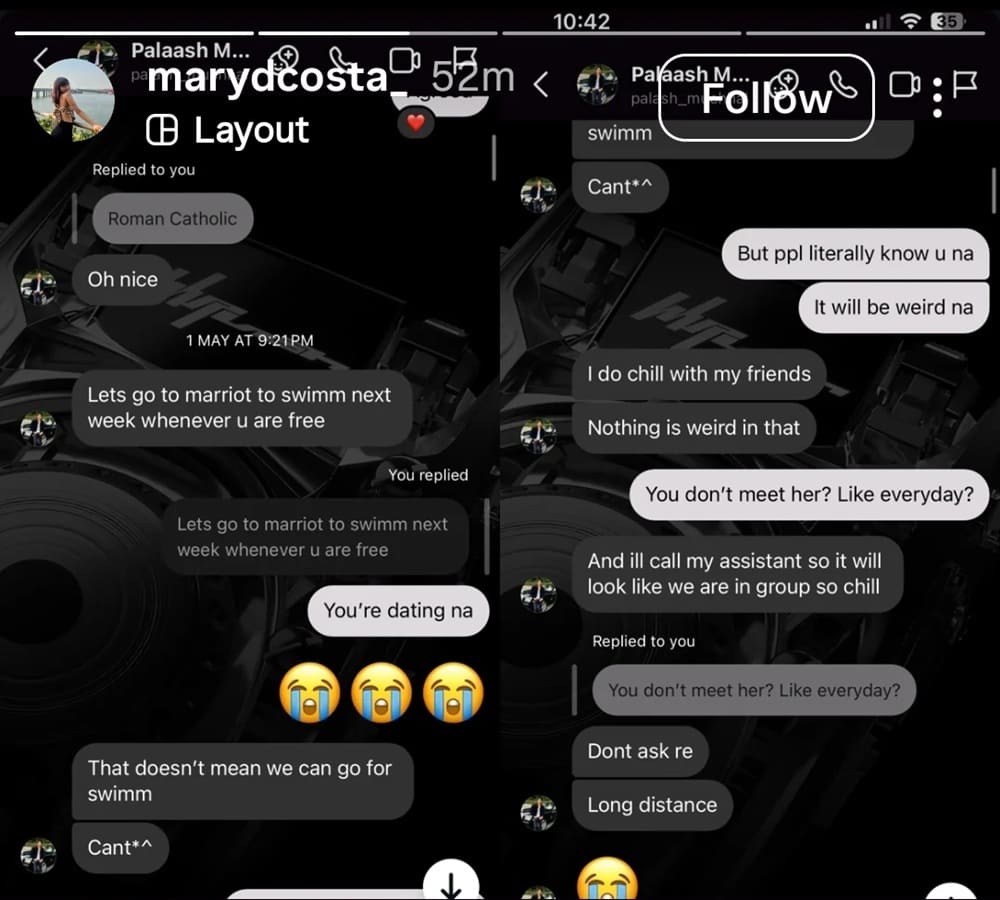 Mary D’Costa is a woman who shared alleged screenshots claiming private conversations with Palash Muchhal.