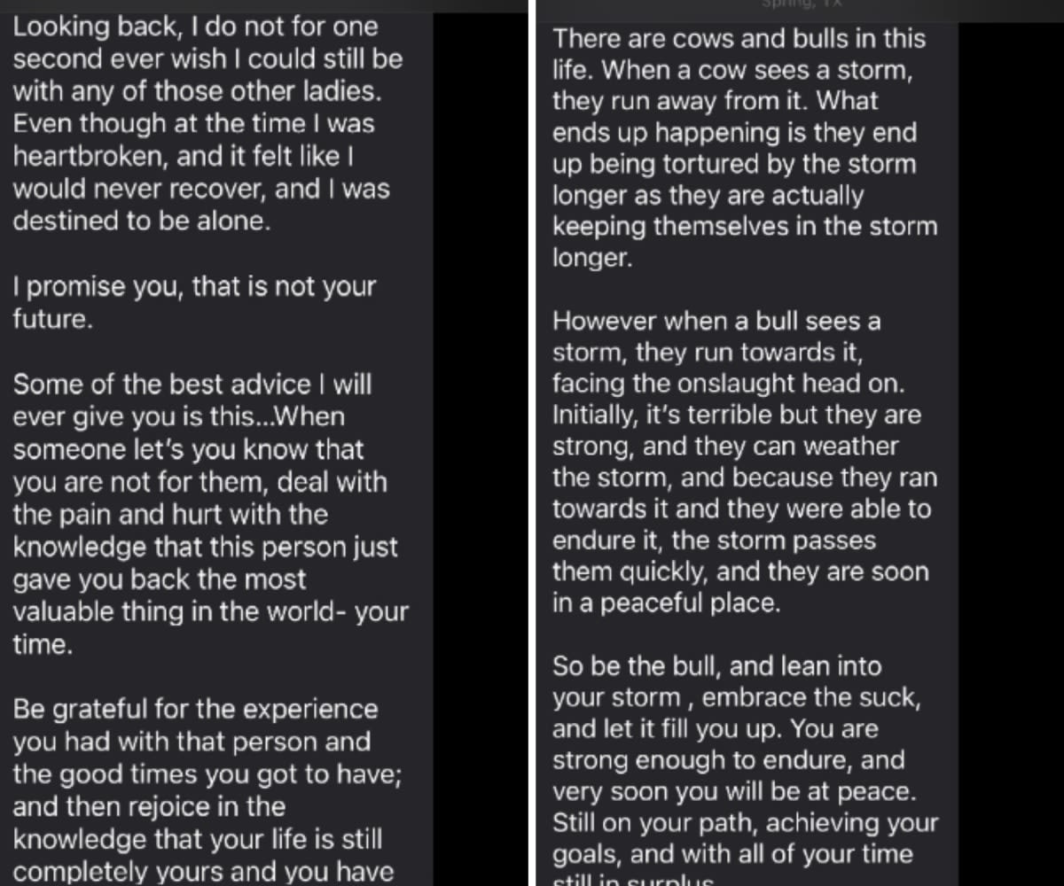 He told her that not every relationship is meant to last, and some people enter our lives only to teach us lessons. According to him, pain today can protect us from bigger pain tomorrow.