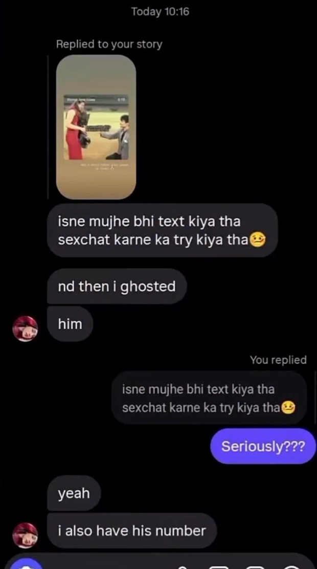 - Palaash tried many times to start inappropriate chats with her on WhatsApp.
